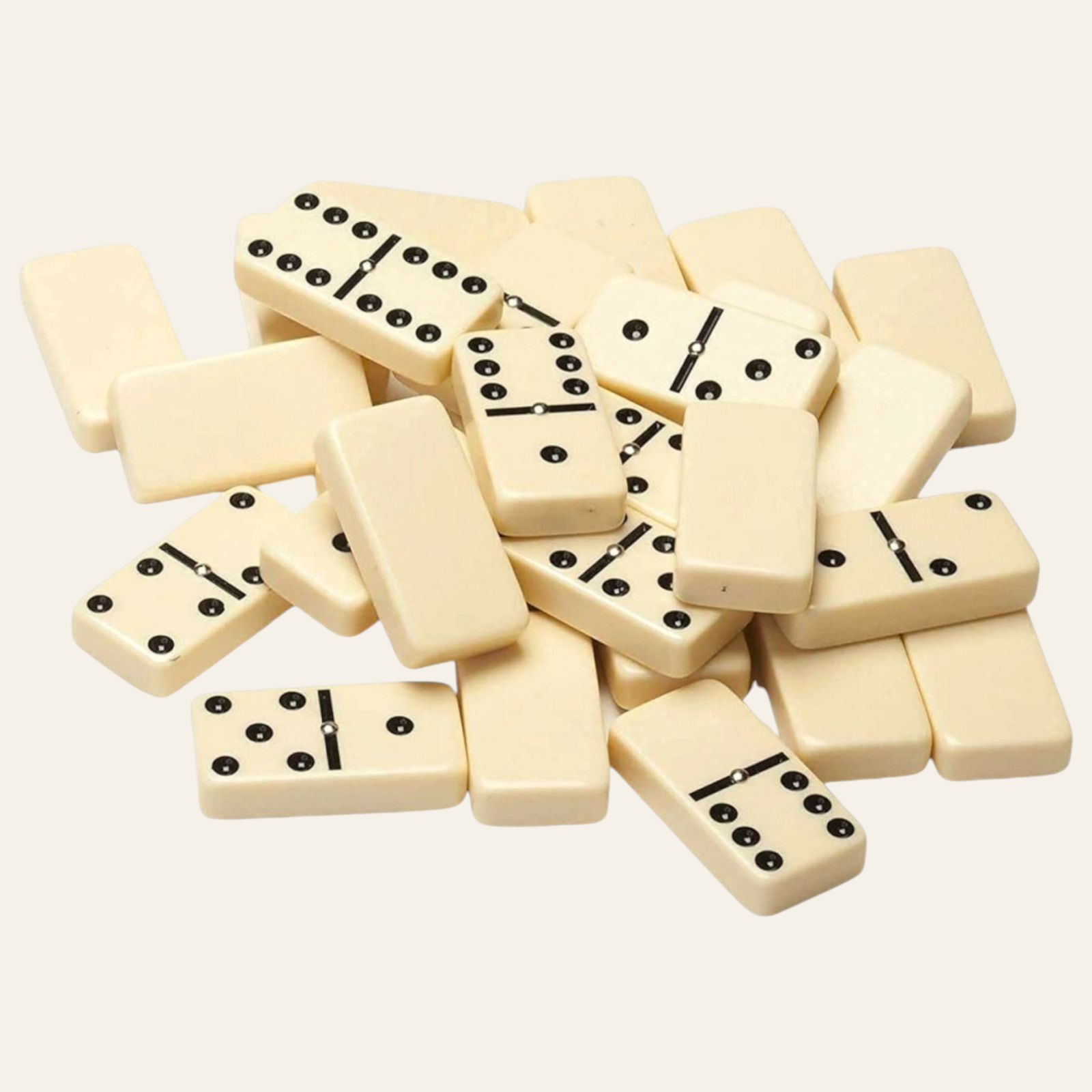 Bring classic fun to your home with this 28-piece standard size domino set. Each domino is made from durable material with a smooth finish and features easy-to-read black dots on a beige background.