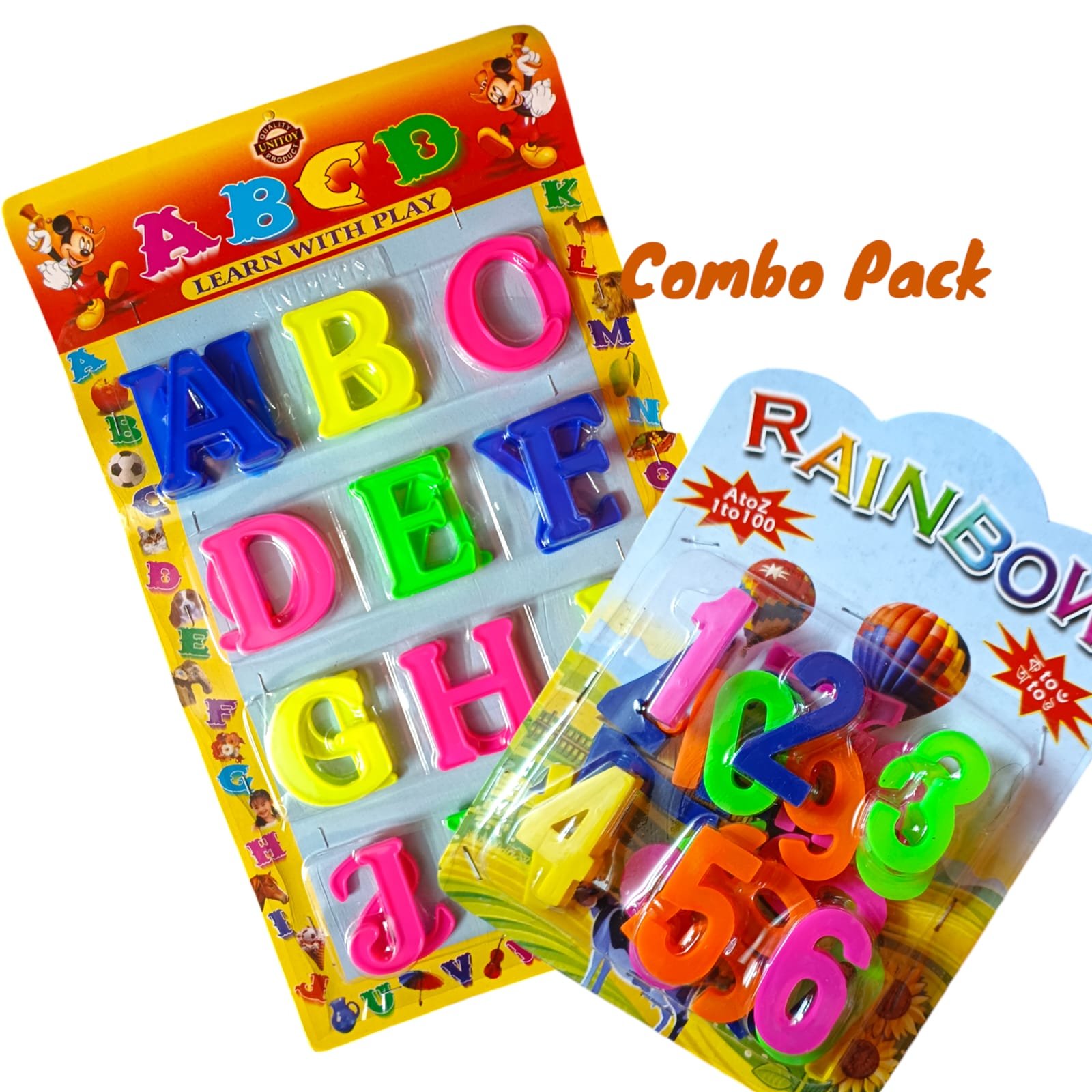 Combo pack includes A–Z alphabets & 1–10 numbers in bright 3D style